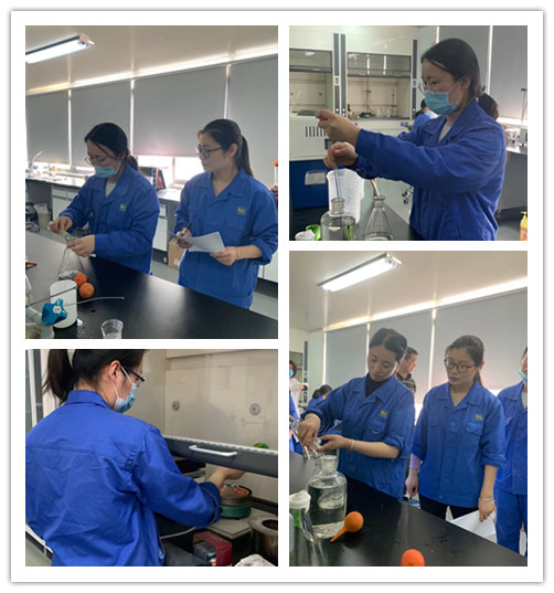 實踐操作考核內容主要為公司產(chǎn)品的各項質量指標的檢測,通過檢驗化驗員對檢測過程的掌握程度和熟練程度,考核具體的操作流程及檢測后的數(shù)據(jù)處理和報告填寫,考核檢測過程中的質量控制是否符合要求。
